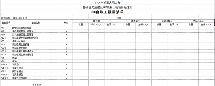 “0#”臺(tái)賬按單位、分部、分項(xiàng)工程劃分標(biāo)準(zhǔn)編制,可以將計(jì)量支付與質(zhì)量檢驗(yàn)評(píng)定有機(jī)結(jié)合起來(lái),這樣可以使質(zhì)檢、測(cè)量、實(shí)驗(yàn)、計(jì)量等部門(mén)的內(nèi)業(yè)工作都在同一個(gè)規(guī)則下進(jìn)行,提高了整個(gè)項(xiàng)目(合同段)內(nèi)業(yè)管理的效率。